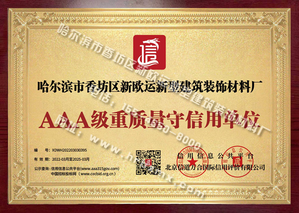 重质量守信用牌匾