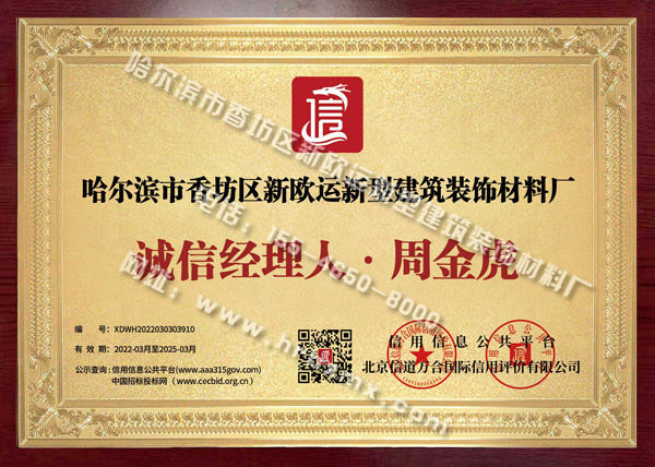 中国诚信经理人证书牌匾